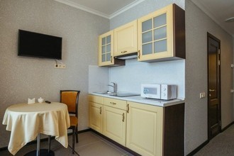А для тех, кто хочет остановиться в Екатеринбурге на длительный срок, отель «Высоцкий» предлагает апартаменты с обслуживанием на уровне пятизвездочного отеля. В апартаментах предусмотрено все, что нужно для комфортного проживания. Здесь есть гостиная и обеденная зоны, а также рабочее пространство. Кроме того, в апартаментах есть кухня, оборудованная необходимой бытовой техников и посудой.
